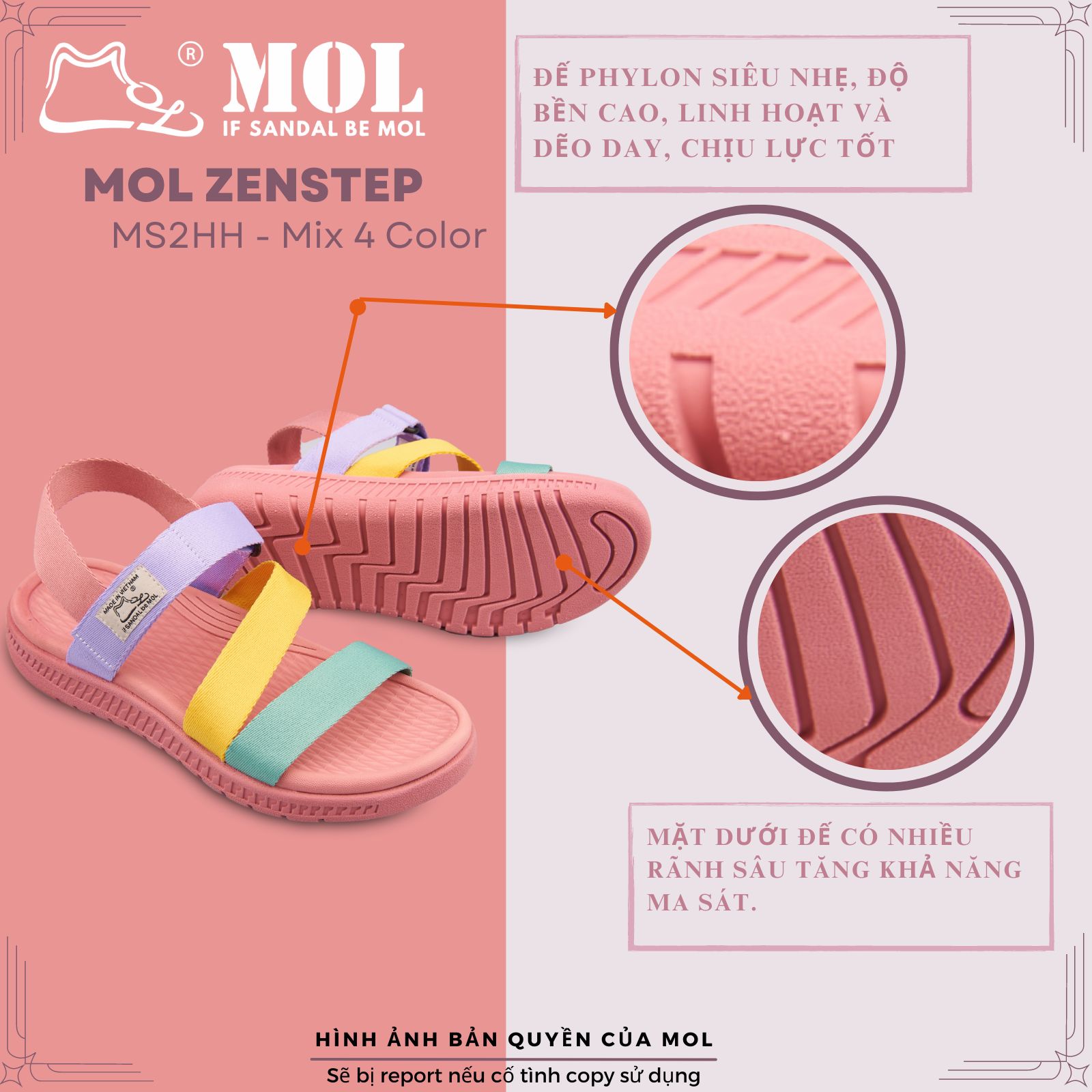 - Đế cao su nguyên chất ma sát tốt, bám dính mọi địa hình, độ chống trơn trợt cao.